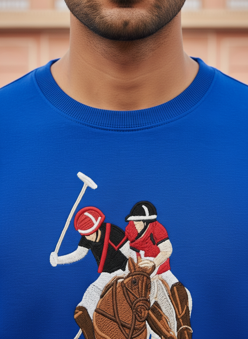 Upgrade your style with the Luxury Blue Polo Embroidered T-Shirt, crafted from high-quality non-shrinkable fabric for long-lasting comfort. Featuring premium polo players embroidery, this designer wear offers durability, elegance, and a perfect fit for men who value luxury fashion.